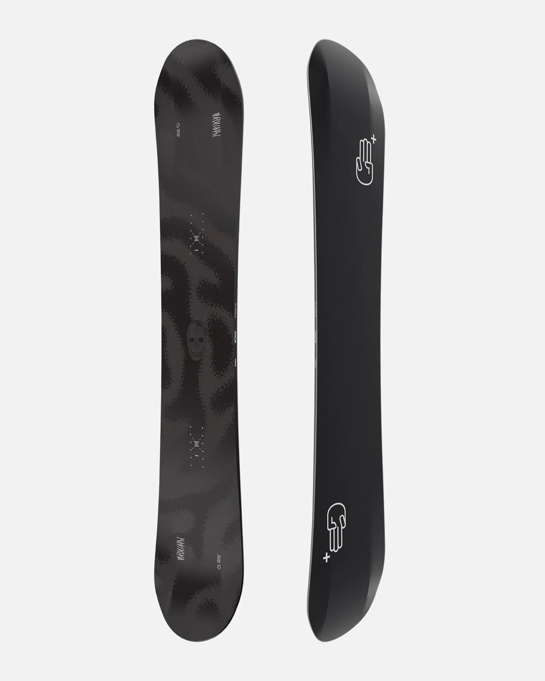The Disaster+ is one of the lightest, fastest and most responsive jib boards on the market. Loaded with premium materials typically reserved for freeride and all-mountain boards, it offers riders a distinct and exhilarating freestyle experience like no other. Playful as a newborn puppy as always with Bataleon's Disaster, but with added 'bite' and a smidgen of extra stiffness and pop for fun beyond the park. It also gains you added stealth points with it's black on black skull graphics.