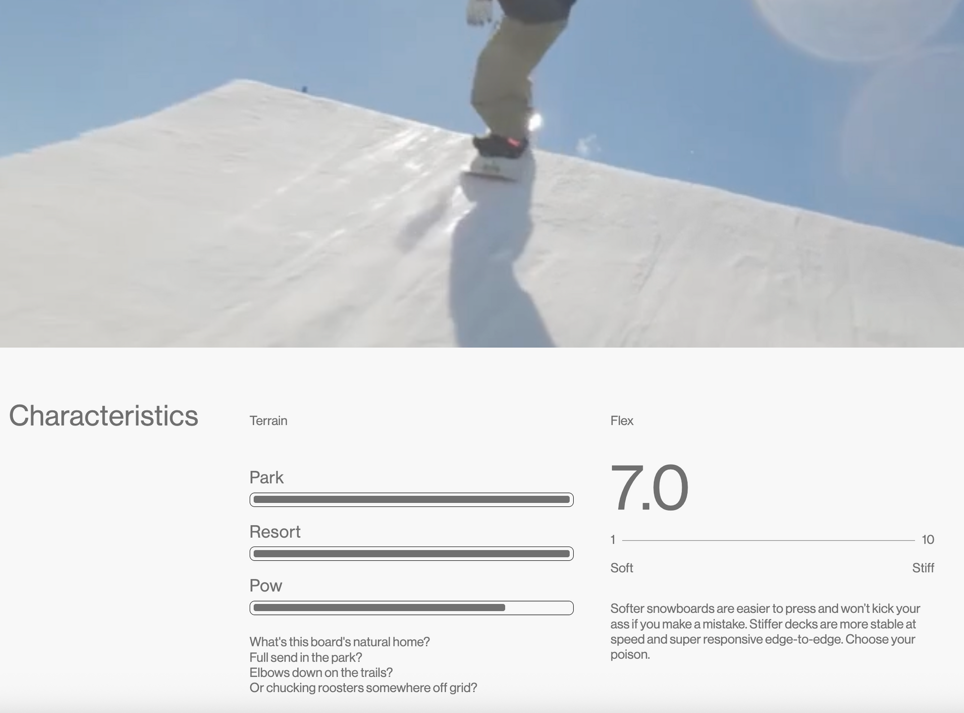 3D base , working in a three-dimensional way, obtains a spoon-shaped tip and tail, to add maneuverability and floatation to any profile. the value that indicates the resistance to bending of a snowboard.
